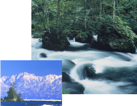 富山県は北アルプスの山々から雪解け水(夏でも15°前後)が流れ、県土面積の約67%を森林が占め、その積もった枝葉の堆積層が天然のフィルターの役割を果てしています。そのため、全国でも有数なおいしい水の産地となっています。